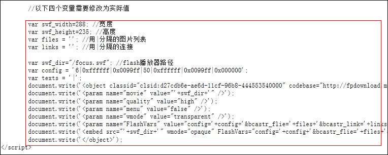 5.成品网站:直接上传focus.swf到其目录下,将flash文件名修改替换,不需要改代码.