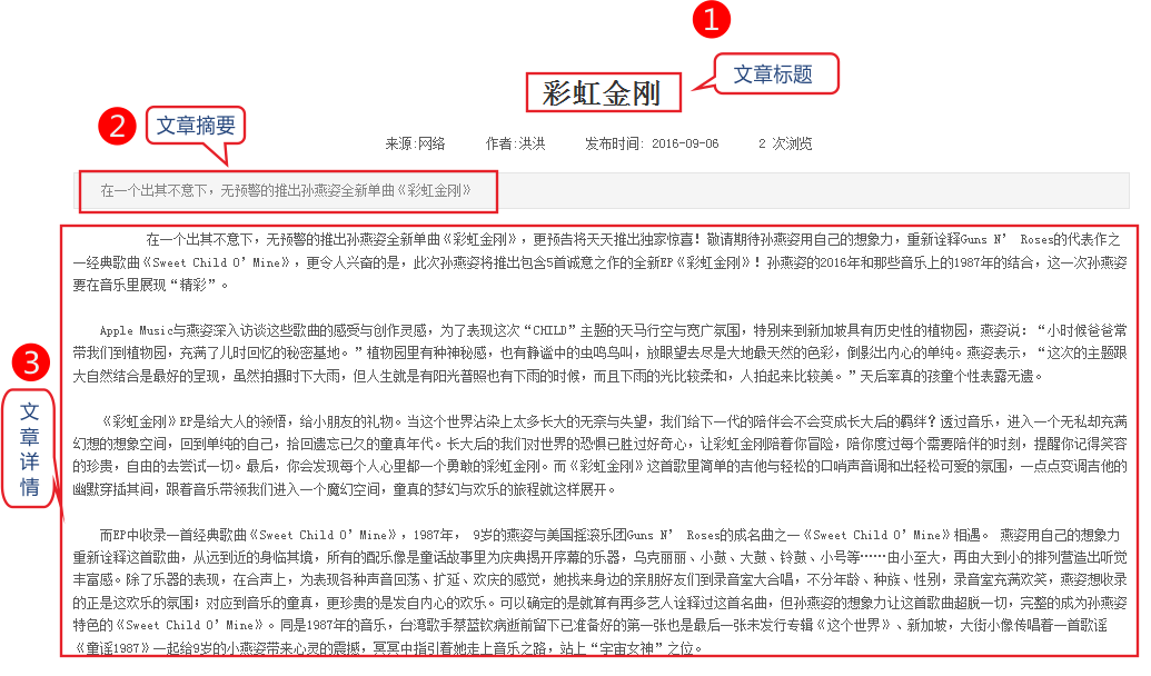 3、下面是一篇简单的文章在网页展示