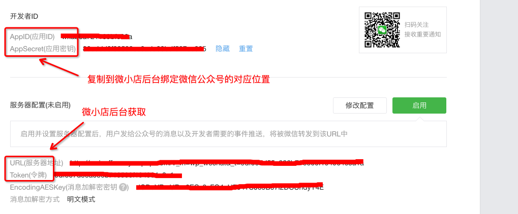 注意:要先在微小店中保存微信公众号,才可以在微信公众平台中提交服务器配置修改,否则会失败。(测试公众号也可能会失败,推荐采用正式的微信公众号)。