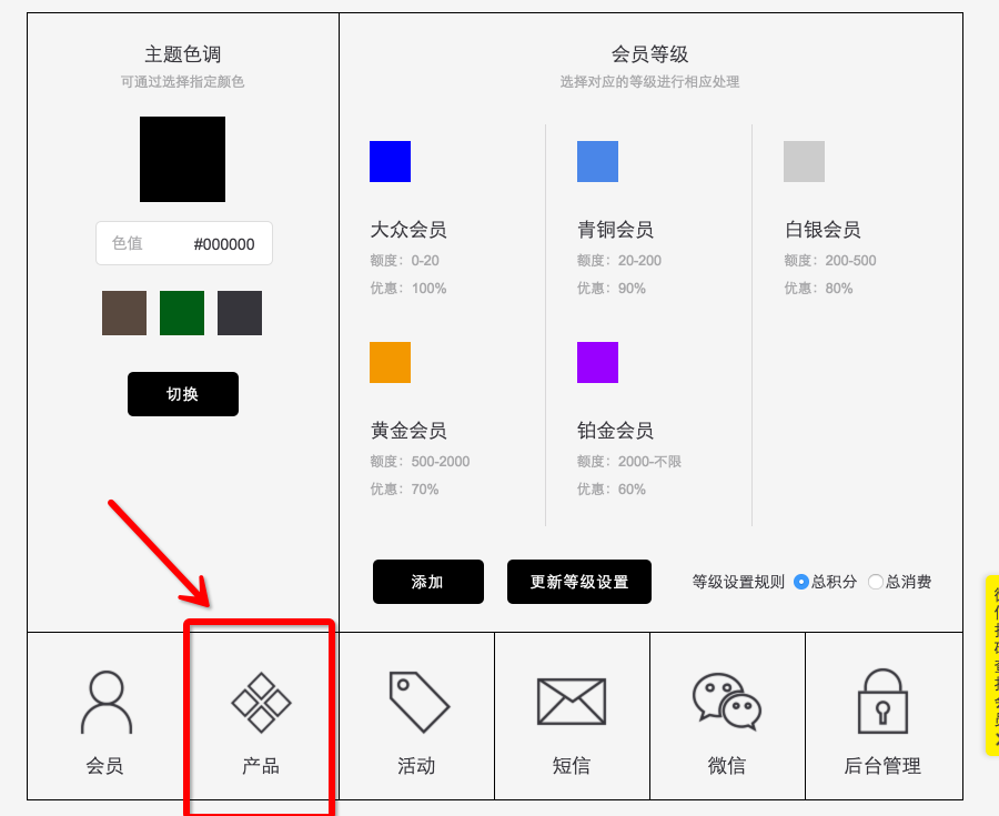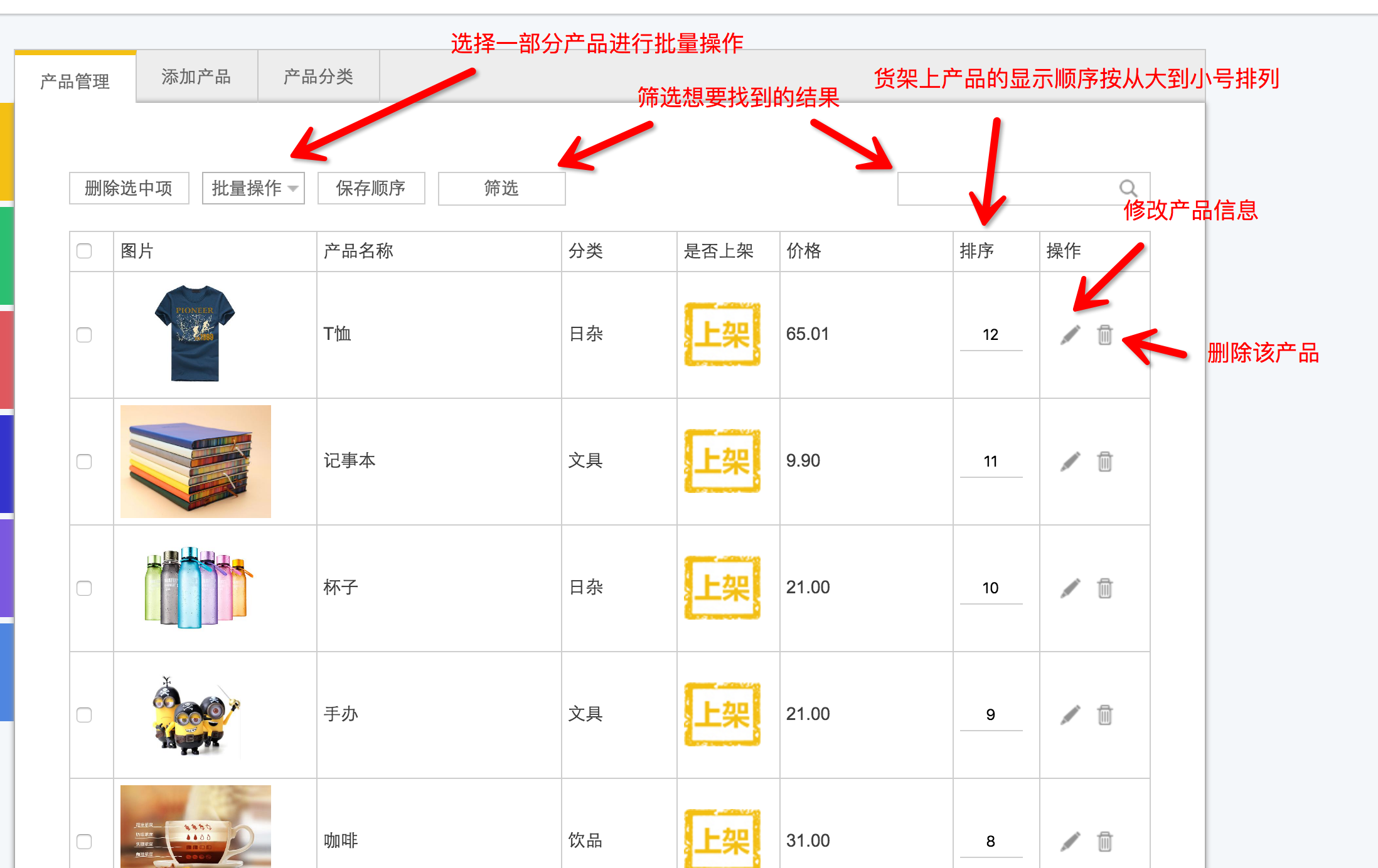 注意:筛选条件包括分类,名称,产品价格,产品原价
