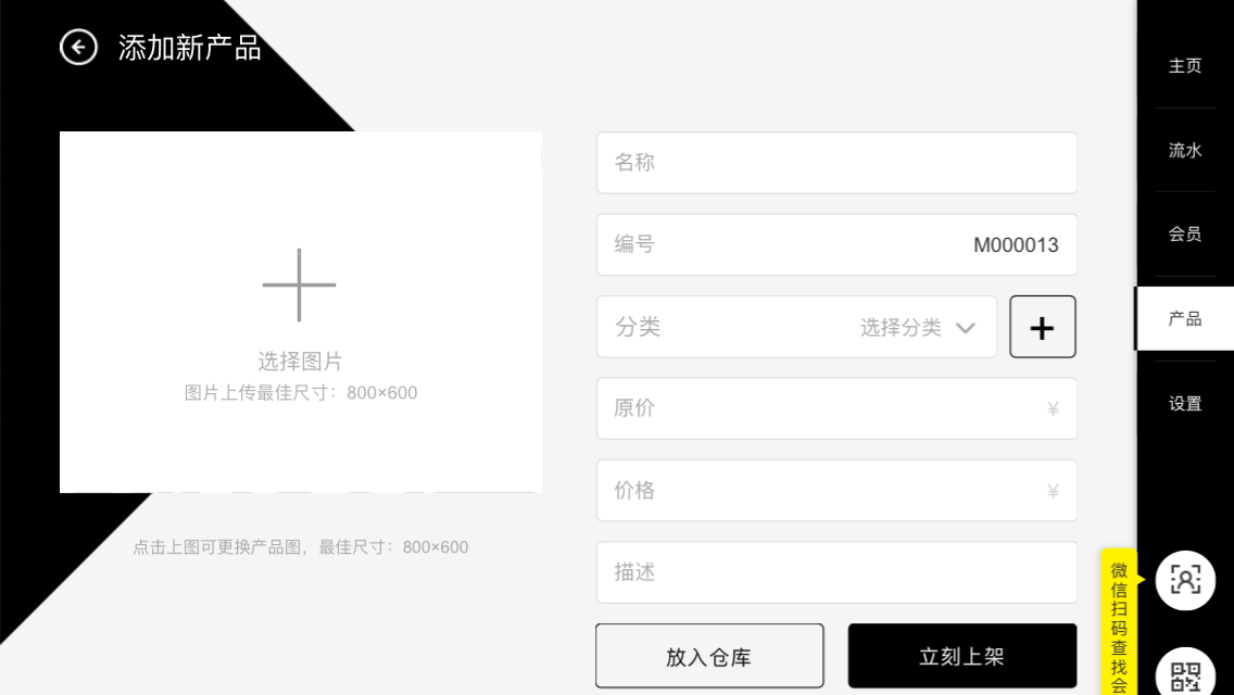 另当使用移动端设备添加产品时,图片可以通过相机拍照获得。