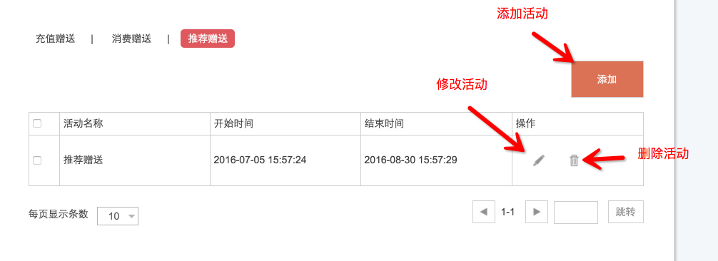 活动设置主要包括推荐赠送,充值赠送和消费赠送 活动所有的页面结尾如下所示