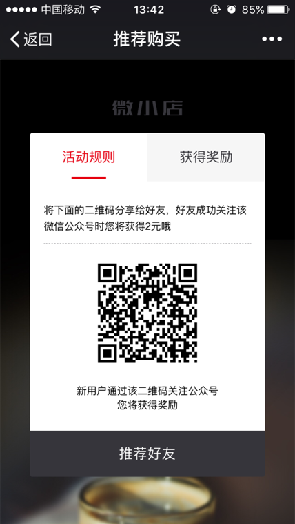 推荐赠送是指当把该公众号二维码分享给朋友并且朋友关注时将会获得该奖励。(有几个好友扫二维码关注公众号就获得几次奖励) 1、添加推荐赠送
