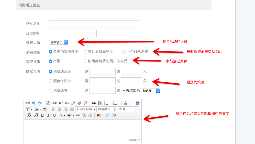 消费赠送是指当消费达到一定的水平时就会获得奖励 2、添加消费赠送活动