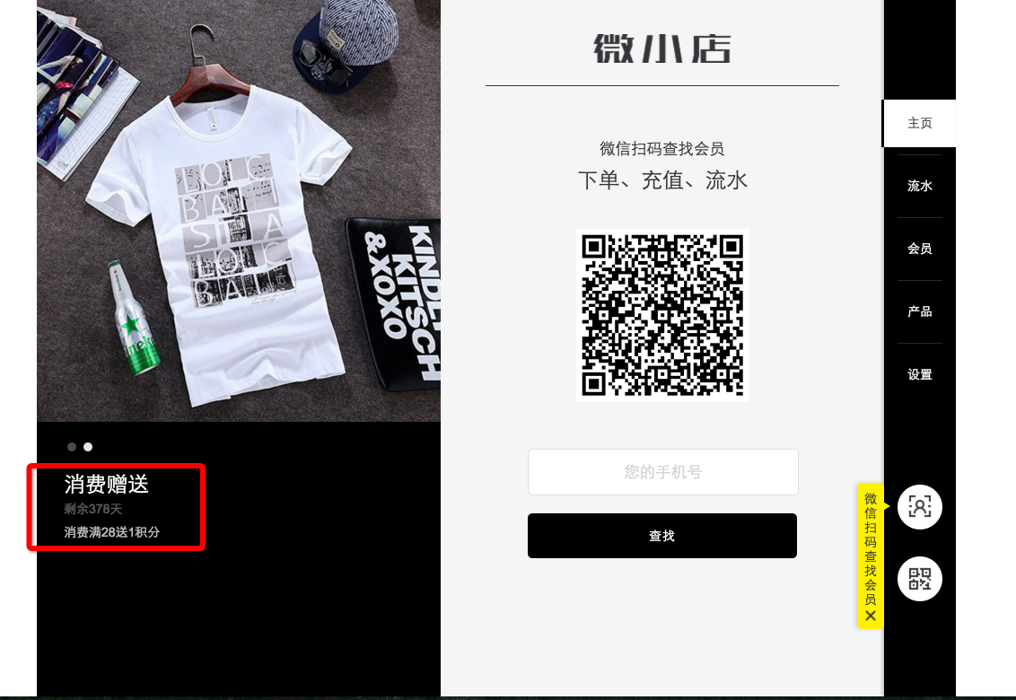 显示在首页轮播图中的文字可用来提醒销售人员目前店内的活动,显示如下