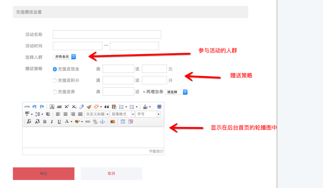 充值赠送是指当充值金额达到一定要求时,将会获得奖励 3、添加充值赠送活动