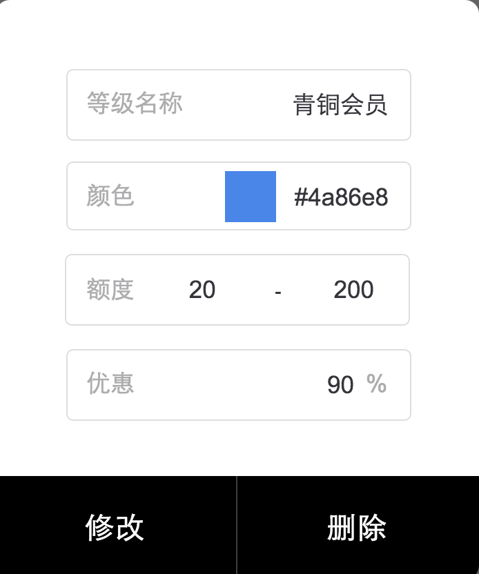 会员等级的编辑,点开某个会员等级就会出现下面的弹窗并进行修改