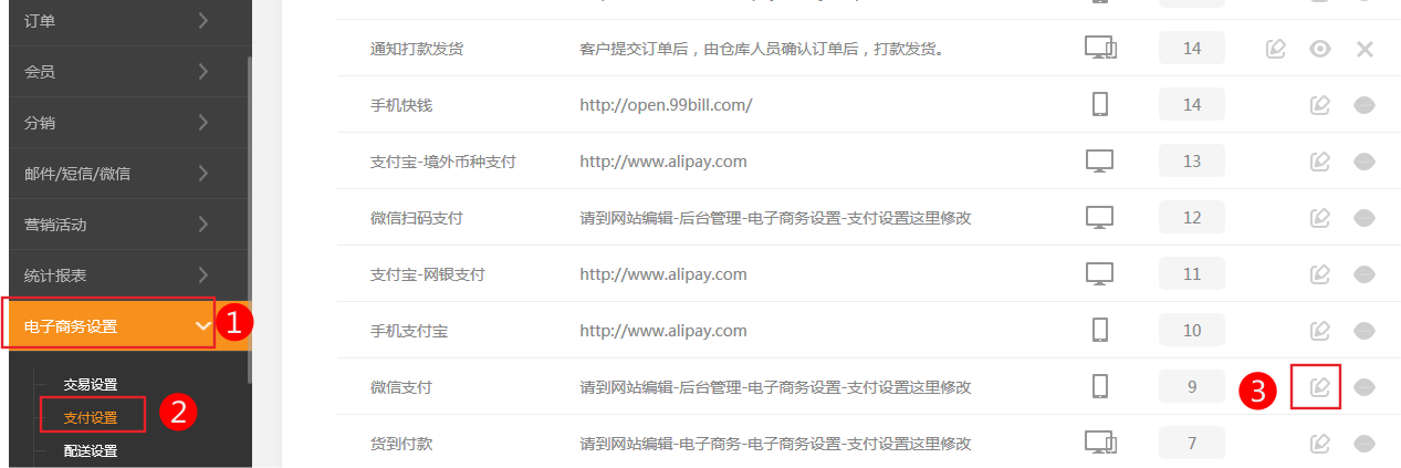 微信支付费率请参考 http://kf.qq.com/faq/120911VrYVrA140508FrMRZf.html 2.后台-》电子商务设置-》支付设置-》微信支付点击编辑。
