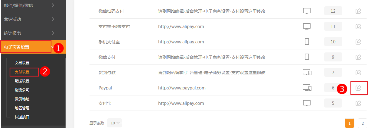 1.依次 点击 后台管理-电子商务设置-支付设置-编辑贝宝