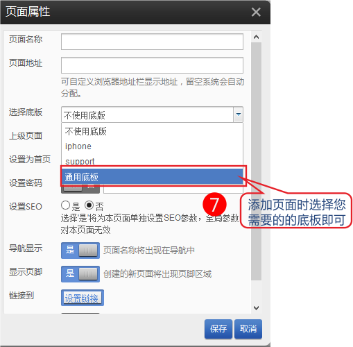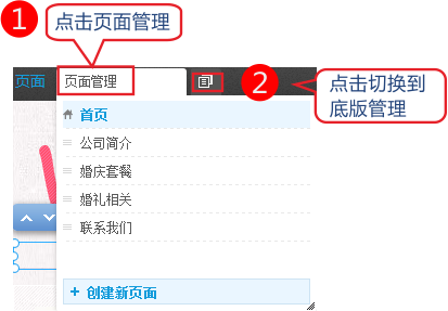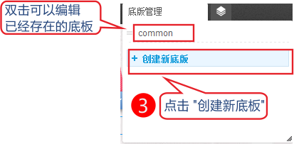 底板设计 ( 类似CMS中的公共模板 )底版页面本质上和其他的页面没有区别,唯一的不同是在用途上,它方便用户减少那些重复的数据和布局,特别是布局上的。 创建底板步骤为 1、依次点击页面管理-底板管理