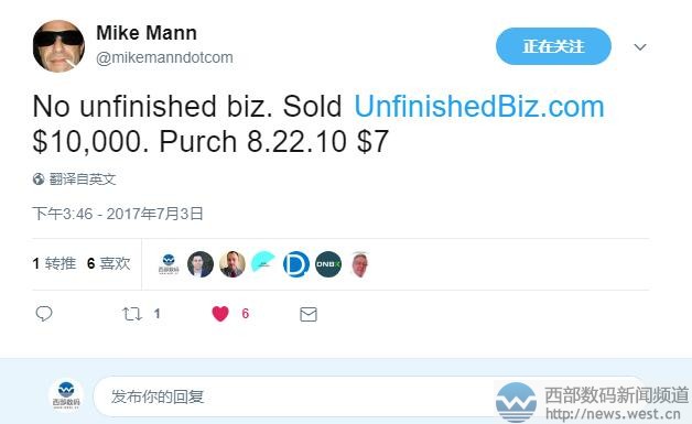 “没完成的生意”也这么值钱!7美元注册的长域名卖出68000元!西部数码(west.cn)7月4日消息,几乎所有的米友都希望自己名下的域名能够低买高卖,最好像海外大佬Mike Mann一样,拥有高超的销售能力。说到Mike Mann,近期他又以10000美元(约合人民币68000元)的价格出手了组合域名Unfinishedbiz.com,而这枚域名当年的注册成本才7美元!