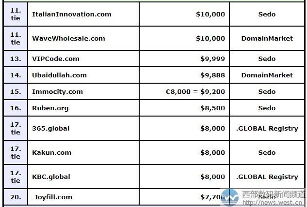 DN榜:比特币风头太盛!3月注册的域名bitcoincash.org卖出 6位数!西部数码(west.cn)7月20日消息,本期的DN交易榜(7.10-7.16)上,.com域名不再完全占据榜单,而是出现国别域名、新顶级域名、其他域名百花齐放的态势。比如,本期夺得DN冠军的便是域名bitcoincash.org,成交价为48,888美元,约合人民币33万元。