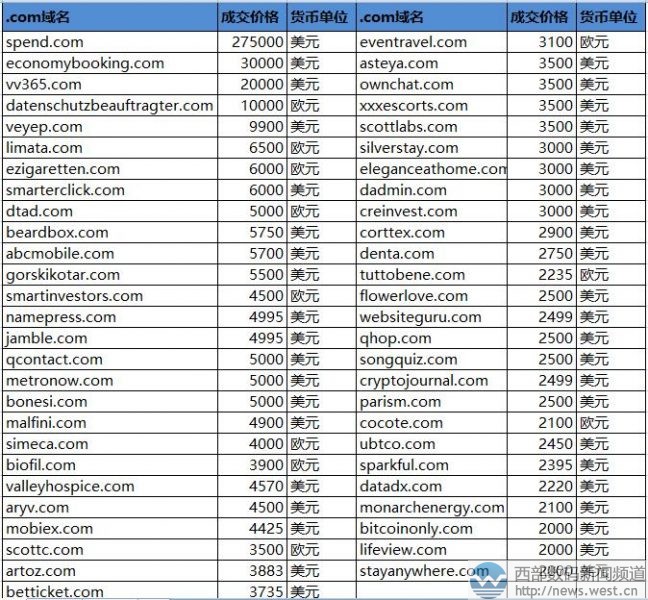 领跑sedo榜!英文域名spend.com拍出182万元!西部数码(west.cn)11月29日消息,据外媒消息,最新一期的sedo交易榜刚刚出炉。本期共有78个域名超2000美元成交,其中冠军由双拼域名spend.com以275,000美元摘得,约合人民币182万元。