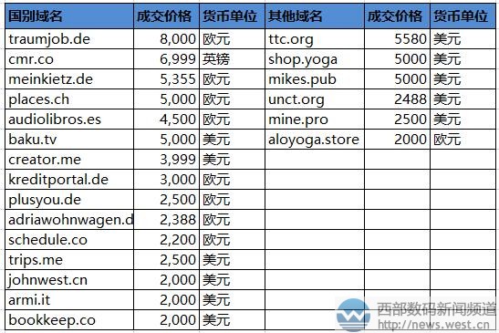 “国民”域名以49万元登顶Sedo榜! .store等新顶级榜上有名西部数码(west.cn)1月10日消息,国外sedo平台刚刚发布了新一期交易榜,本期共有71个域名超2000美元成交。其中,名列榜首的是英文单词域名publica.com,成交价为75,000美元,约合人民币49万元。