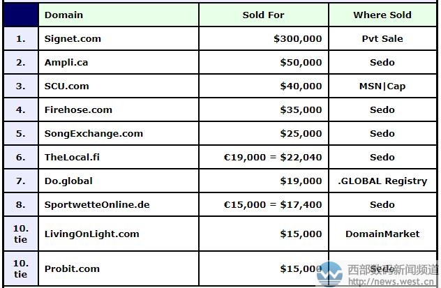 来源西部数码新闻资讯,原文链接:DN榜:英文域名signet.com近200万元夺冠!国别域名表现不俗!