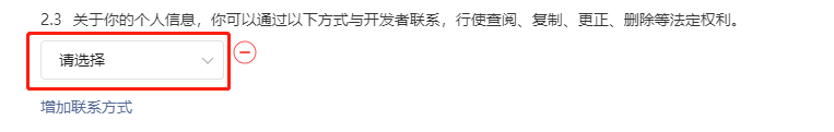 第三步:点击【增加信息类型】将下方的信息类型用途填写至小程序管理后台对应输入框当中(注:若未完善,可能会影响小程序授权登录)