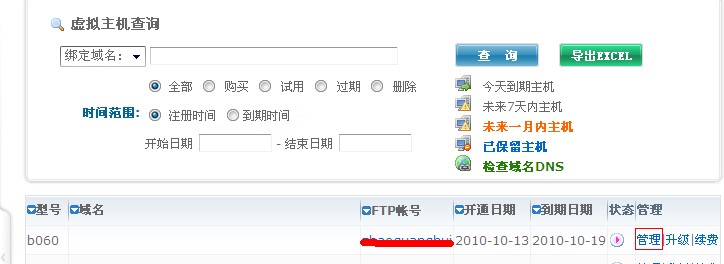 首先,打开我司网站,输入用户名和密码登陆到管理中心,点击左侧的“业务管理”“虚拟主机管理”