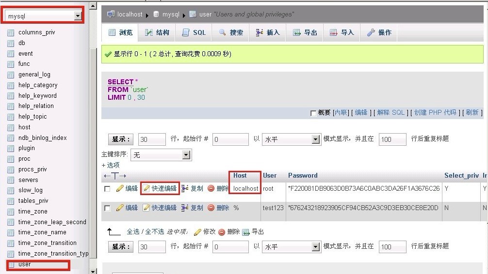 1、Windows系统主机: 方法①、可以用phpmyadmin连接登陆mysql,选择mysql数据库,打开user表,选择您需要开启远程连接的用户,点快速编辑,将host列里面的值修改为%就可以完成。