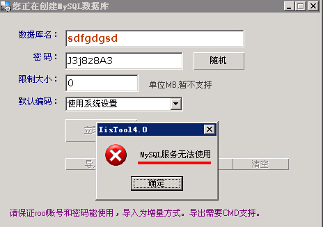 网站管理助手创建mysql数据库失败1.创建mysql时提示: