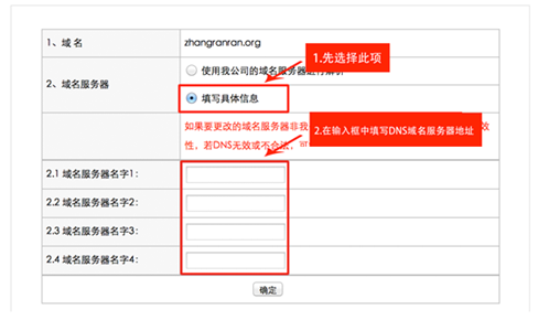 5、进入修改DNS页面,先将域名服务器选择为【填写具体信息】