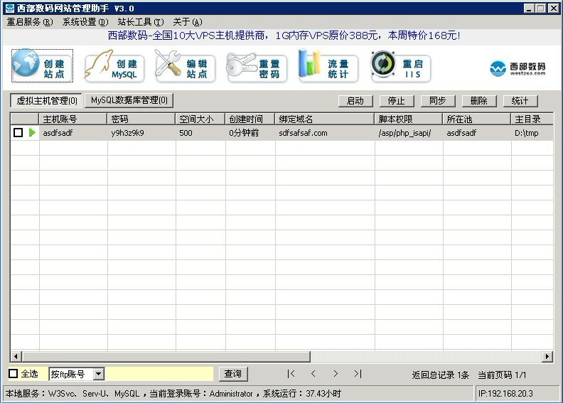 经过近半年的开发、测试,西部数码网站管理助手V3版于近日正式发布。西部数码网站管理助手从2006年发布第一个版本,经过多次的更新,现已具备IIS站点管理、FTP管理、Mysql数据库管理、Mssql数据库管理、服务器安全管理等多项功能,非常适合于拥有多个网站的服务器管理人员使用。